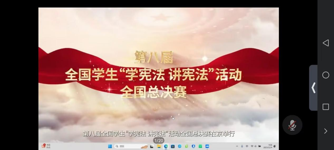 最后,教育部领导孙尧进行了总结讲话。他说:“大力弘扬宪法精神、全面贯彻实施宪法,要坚定不移坚持中国共产党的领导,牢固树立政治意识、大局意识、核心意识、看齐意识,坚定维护习近平总书记的核心地位,坚定维护党中央权威和集中统一领导,始终在思想上政治上行动上同以习近平同志为核心的党中央保持高度一致。作为新时代青年,你们要深入了解宪法、尊崇宪法,自觉弘扬宪法精神,增强法治观念,学法、知法、守法,全面发展。”